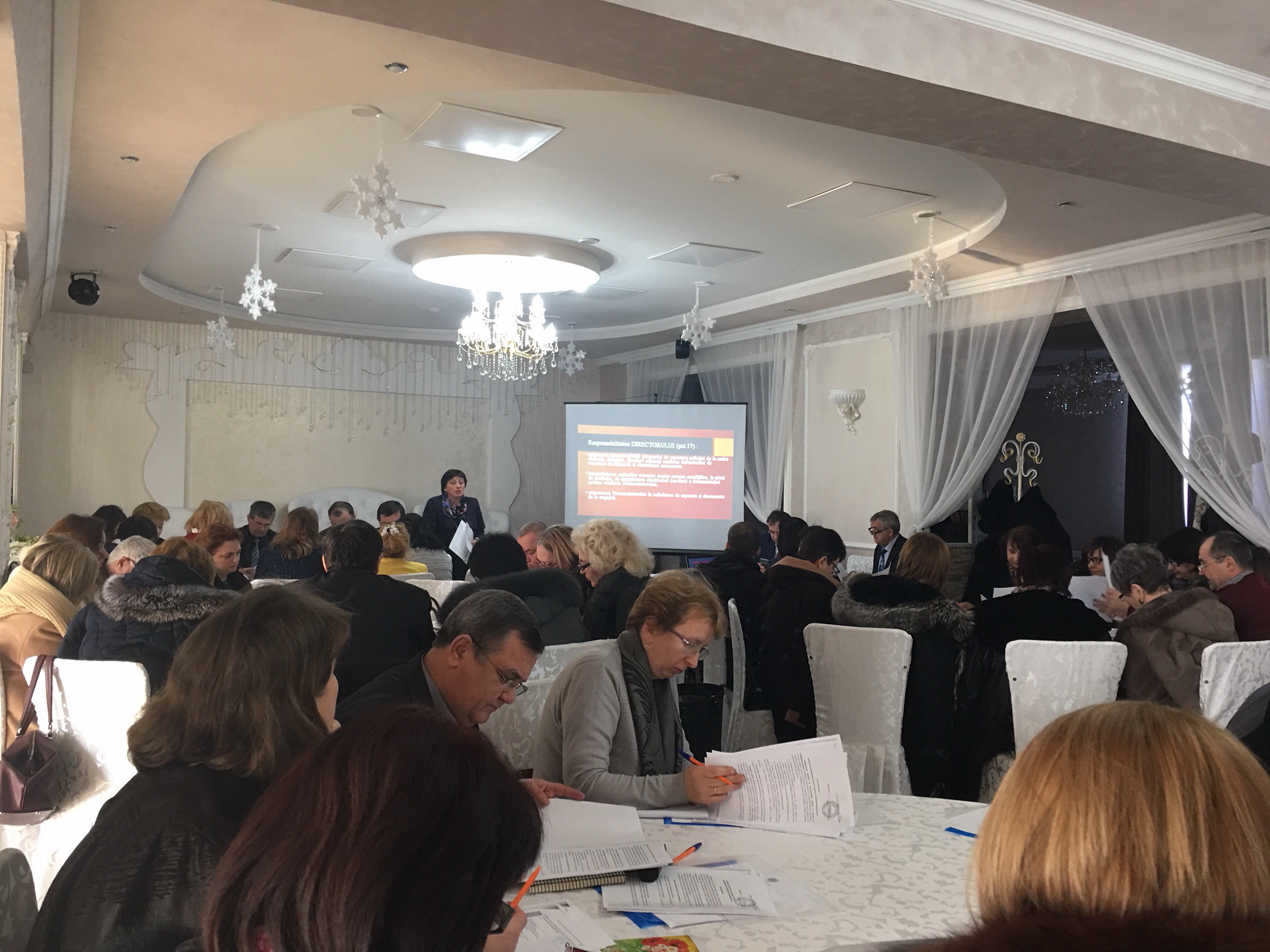 La sesiune au participat:  domnul Valentin Crudu, Şef Direcţie învăţământ general; doamna Corina Lungu, Consultant principal; doamna Angela Prisăcaru, Consultant principal; Şefii direcţiilor OLSDI; cadre de conducere din instituţiile de învăţământ general; cadre didactice  şi reprezentanţii sindicatului de ramură din raioanele Drochia, Soroca, Şoldăneşti, Bălţi, Floreşti.