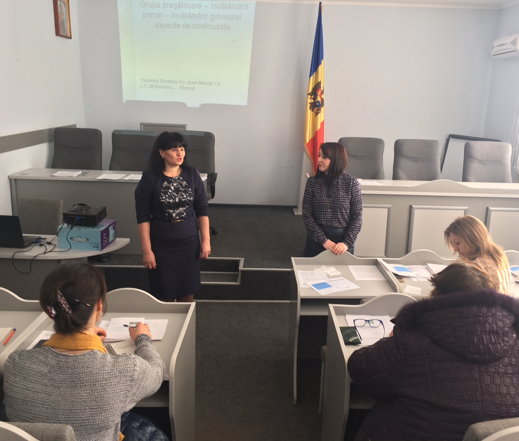 Svetlana Calmațui, Îmvățătoare, clasele primare, LT M. Eminescu Florești a desfășurat trainingul cu genericul: Grupa pregătitoare-învățământul primar-învățământul gimnazial: aspecte de continuitate.