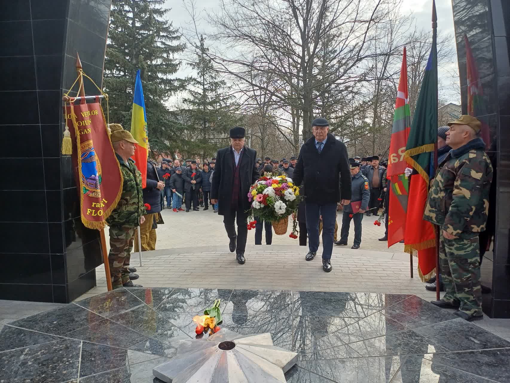 La finele activității, în semn de recunoștință veșnică eroilor care s-au jertfit viața îndeplinind datoria de ostaș, au răsunat salve și au fost depuse flori la Memorialul Eroilor. Grupul ,,Ecoul Afganez”, a prezentat un recital de melodii patriotice la Centrul Cultural din or. Florești.
