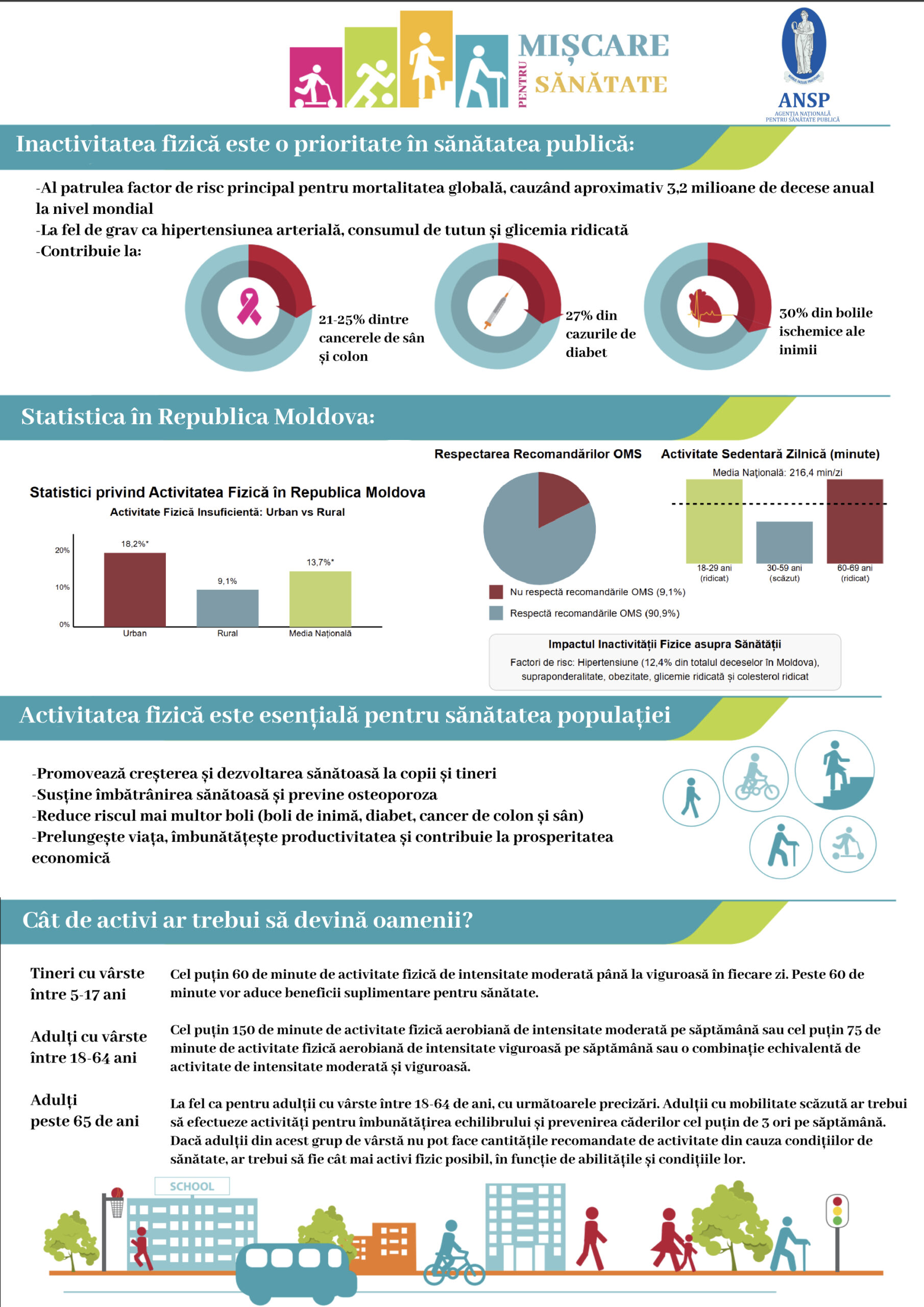 - conștientizarea populației privind beneficiile activității fizice în prevenirea bolilor netransmisibile;